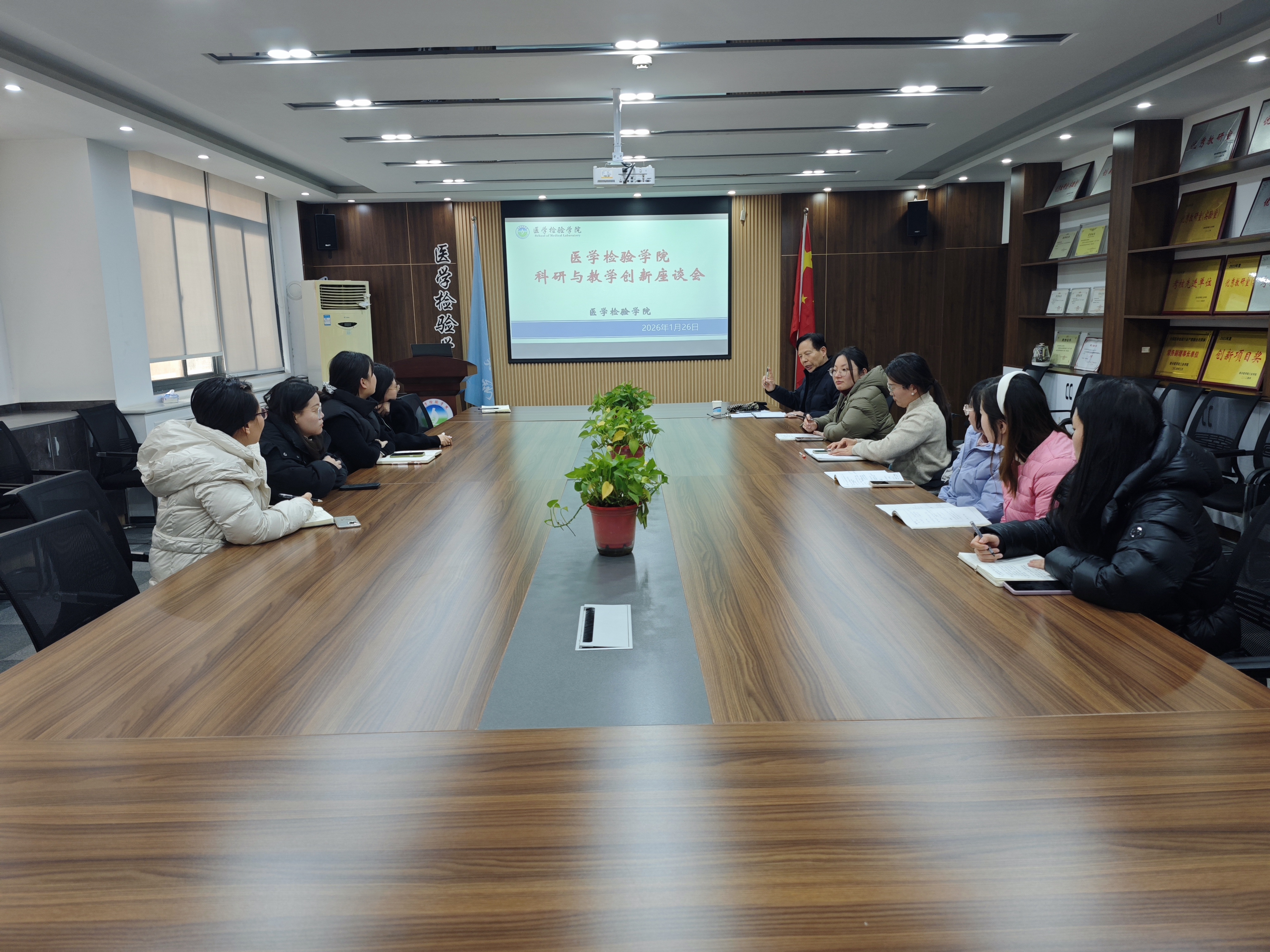 为精准破解科研工作瓶颈、凝聚全员创新发展共识,2026年1月26日,医学检验学院召开科研与教学创新座谈会,院长贺志安、临床基础检验学教研室代表参会,参会教师及相关负责人围绕科研工作推进情况、现存短板难题及后续发展规划,开展了深入研讨与交流。