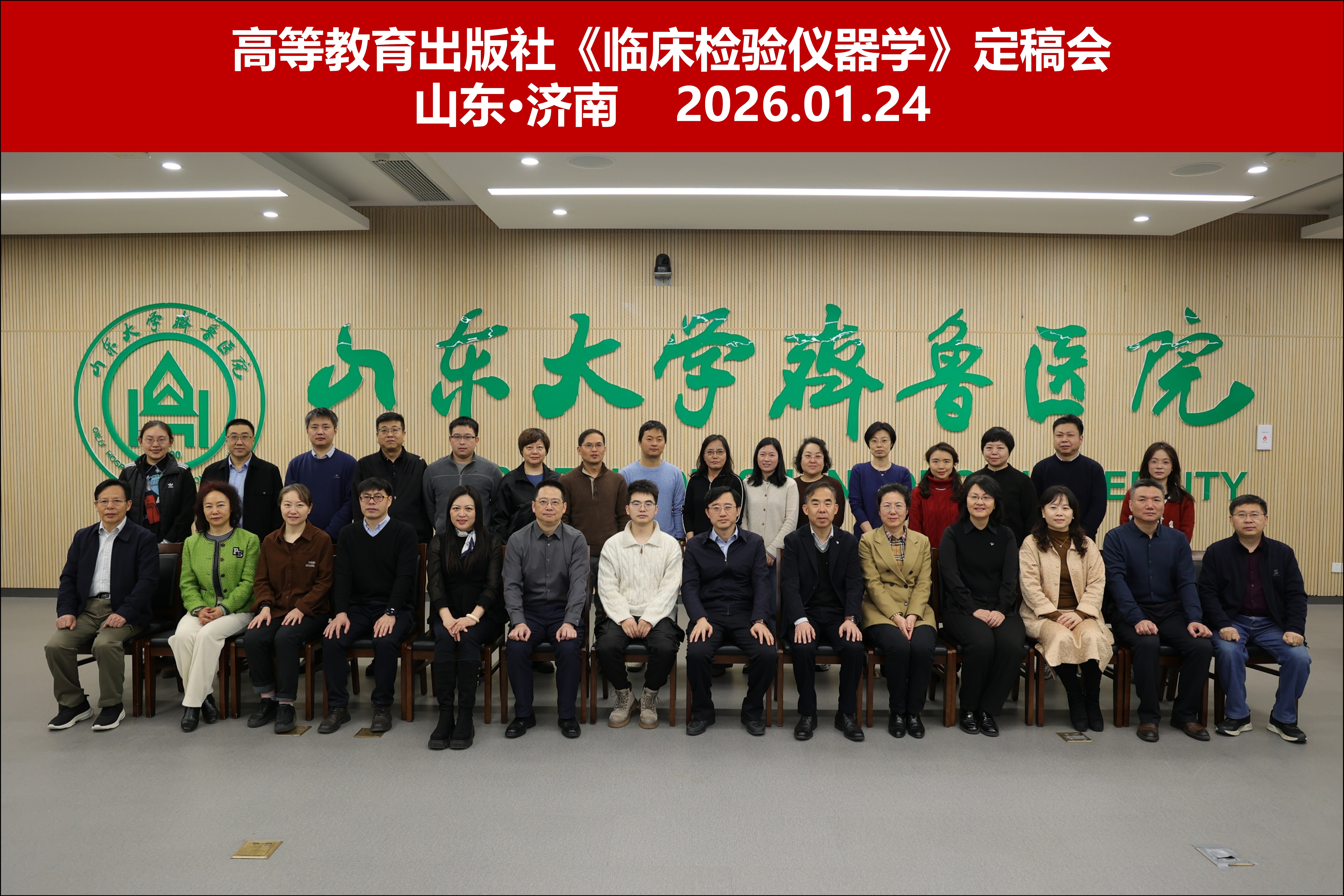 2026年1月24日,高等教育出版社《临床检验仪器学》定稿会在山东大学齐鲁医院顺利召开,我院院长贺志安受邀出席会议,与教材编写组全体成员、行业专家共同参会,围绕教材编写各项重点工作展开深入研讨,确保教材编写质量达标、贴合临床检验教学实际。