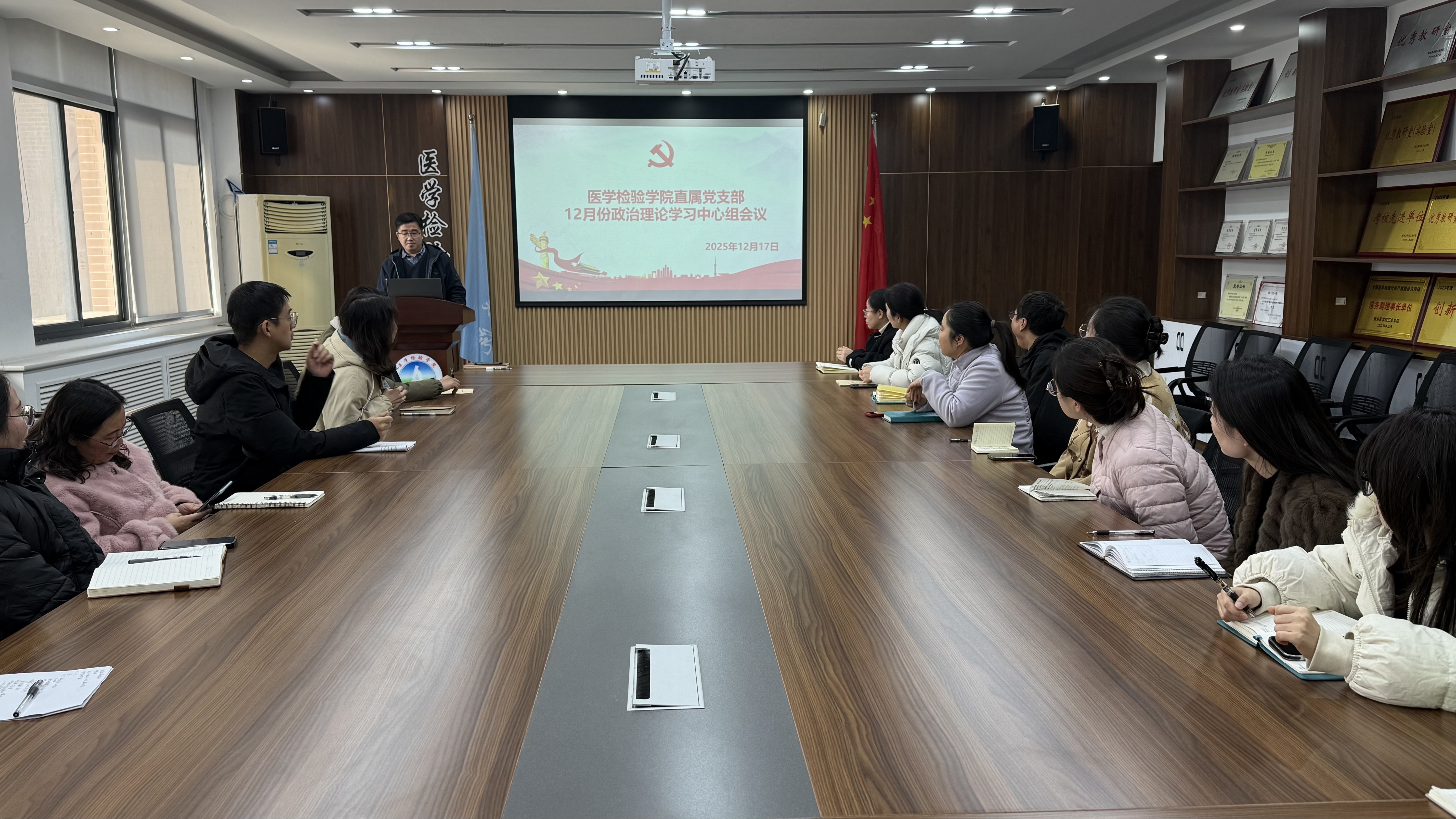 12月17日,医学检验学院直属党支部在医学检验学院一楼会议室进行12月份政治理论学习,会议由党支部书记胡淼主持,全体党员及教师代表参加。会上,党支部书记胡淼领学:《党的二十届四中全会<建议>学习辅导...