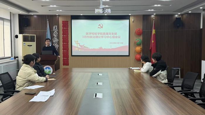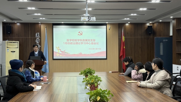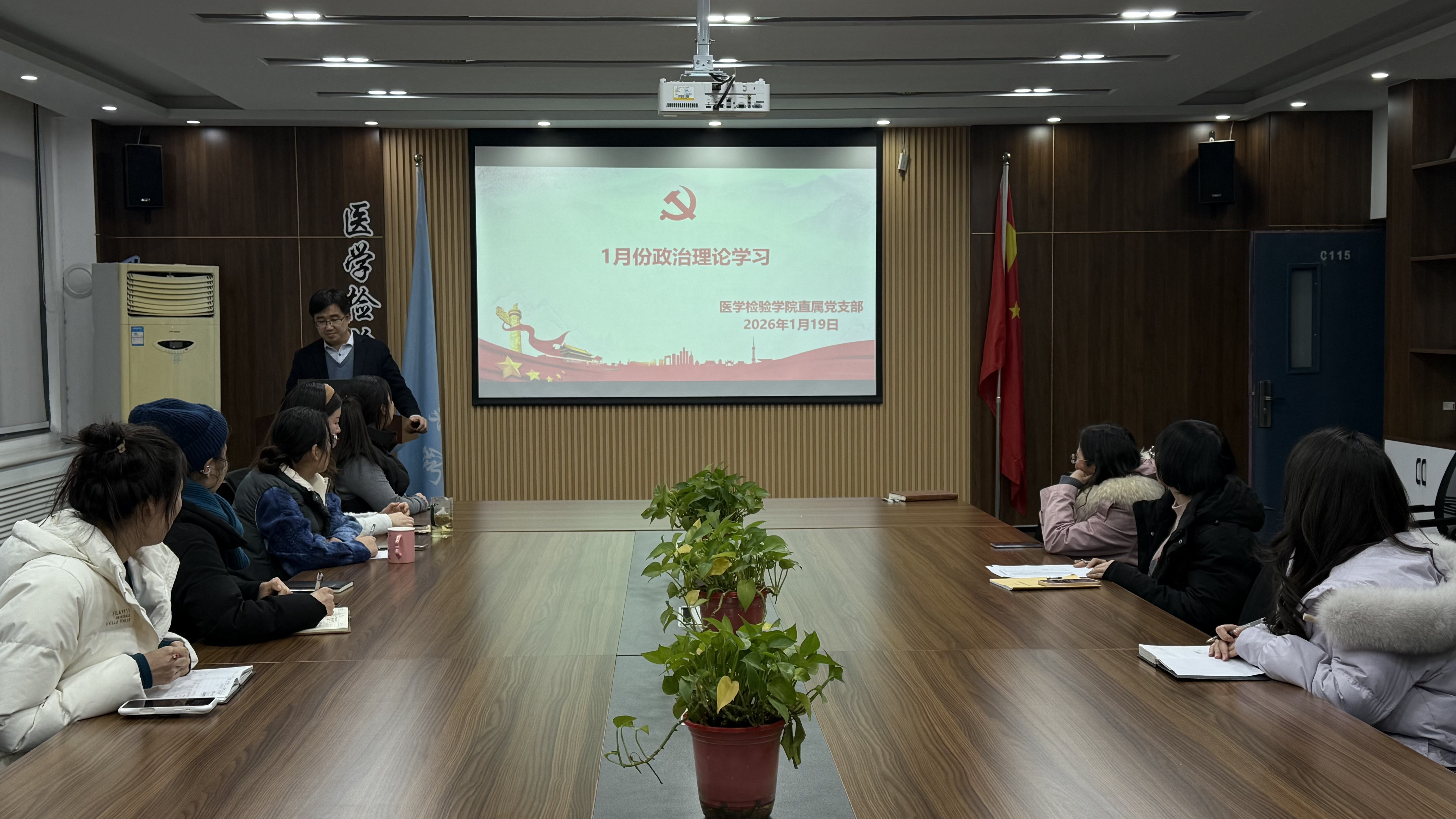 1月19日,医学检验学院直属党支部在医学检验学院一楼会议室进行1月份政治理论学习,会议由党支部书记胡淼主持,全体党员及教师代表参加。会上,党支部书记胡淼领学:《国家主席习近平发表二〇二六年新年贺...